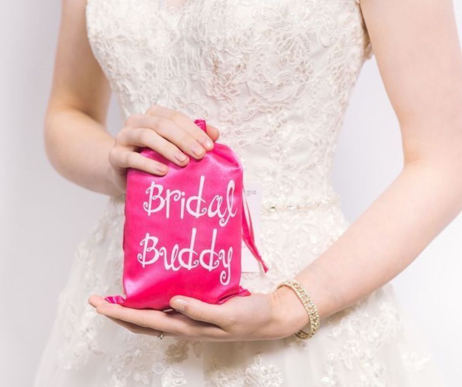 For the bride who is Uncomfortable Using The Bathroom in front of others. It may look like an oversized diaper, but no one will see it but you. Now, you are free to relax and use the bathroom in privacy and not have your bridal party there with you!